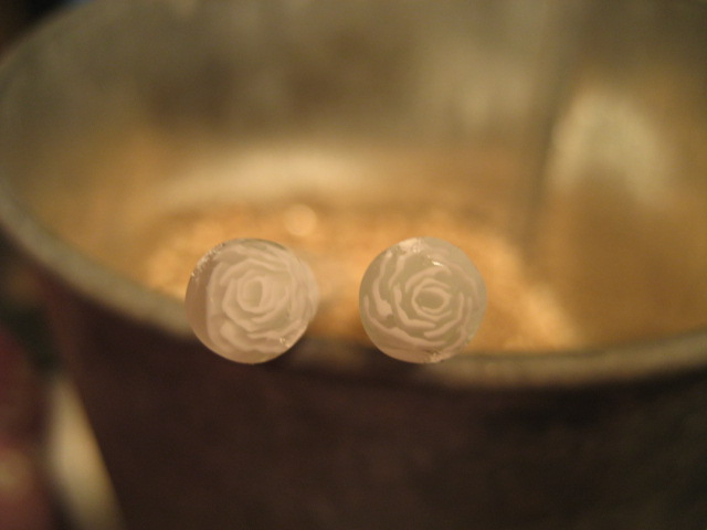 バラのミルフィオリもそうだけど、ボタンもかなりクリアを入れるからすっごい重たい塊になって回し
