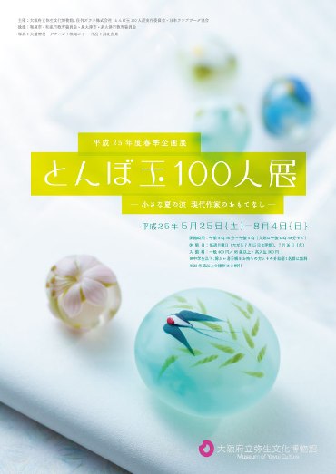 前回、予告していたとんぼ玉100人展と竹内先生のデモの様子をお伝えします