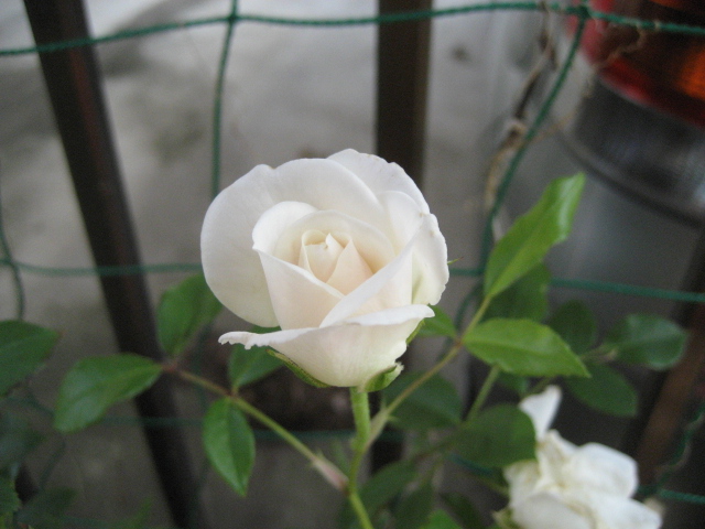 左の白いのがアイスバーグでTVで見てあまりに可愛くて母が、知り合いのガーデンデザイナーさんに頼んで取り寄せてもらいました。母はバラがあまり好きではないけど、これは可愛いと一目惚れ